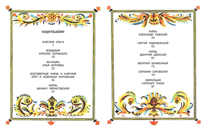 В книгу вошли рассказы для детей о великих русских святых: княгине Ольге, князе Владимире Красное Солнышко, Илье Муромце, Петре и Февронье, Александре Невском, Василии Блаженном, Сергие Радонежском, Серафиме Саровском и др.