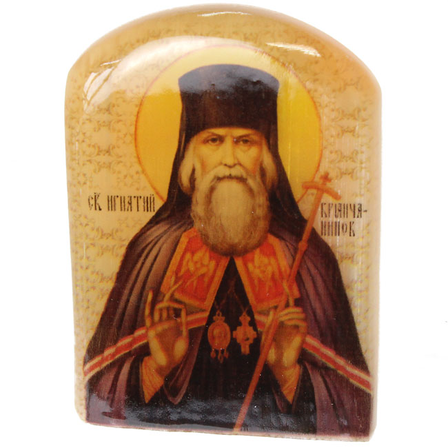 Игнатий Брянчанинов, икона настольная из селенита (45 х 30 х 65 мм, 65 г)