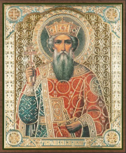 Икона на МДФ, выполненная в технике цветная полиграфия с золотым тиснением.