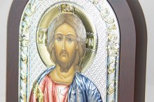 Материал: оклад — износоустойчивая сталь, покрыта листовым серебром; гальваника. Основа — МДФ, лак.