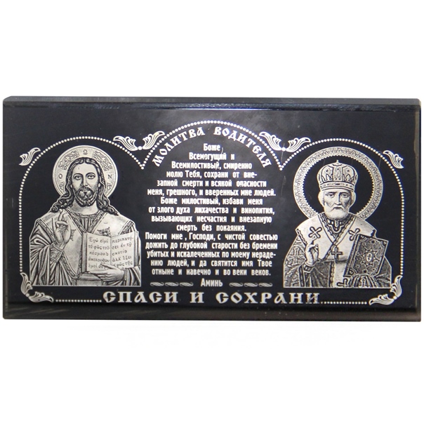 Икона для автомобиля с молитвой водителя. На иконе изображены Спаситель, Николай Чудотворец. На обратной стороне имеется двусторонний скотч.