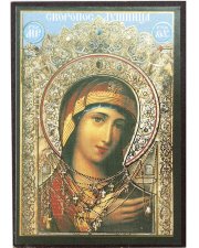 Редкая. Фото не передаёт всю красоту этой иконы. Сверху нежно-голубое сияющее небо, икона сама как медью покрыта, на лике Богородицы лёгкая улыбка. Есть мелкие царапины, видны пиксели. Основа очень тонкая, но икона, как ни странно, даже стоит сама. Бумага приклеена крепко, от лишней влаги под ней проступают полосы клея, поэтому протирать лучше чуть влажной ваткой и вытирать насухо. Запах дерева ощущается, если нюхать саму икону, а так – нет. Сзади дерево покрашено коричневой краской. Икона пришла в индивидуальной упаковке, внутри молитва: «Богородице Дево, радуйся». Празднуется 22 ноября. Эта икона – спасительное средство экстренной помощи. список с оригинала, образ помогает в том же, в чем и оригинал. По некоторым данным, его очень чтила царская семья.