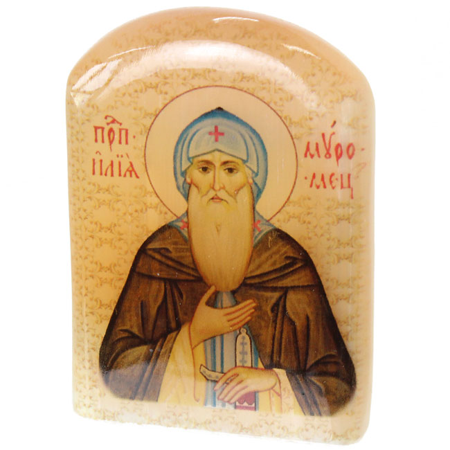 Илия Муромец, икона настольная из селенита (45 х 30 х 65 мм, 65 г)