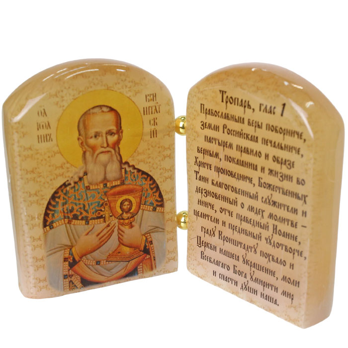 Иоанна Кронштадтский, икона двойная из селенита (6,5 х 9 см)
