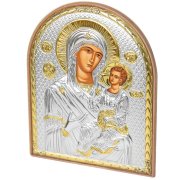 Материал: оклад — серебряная фольга на аллюминевой основе; гальваника. Основа — МДФ, лак.