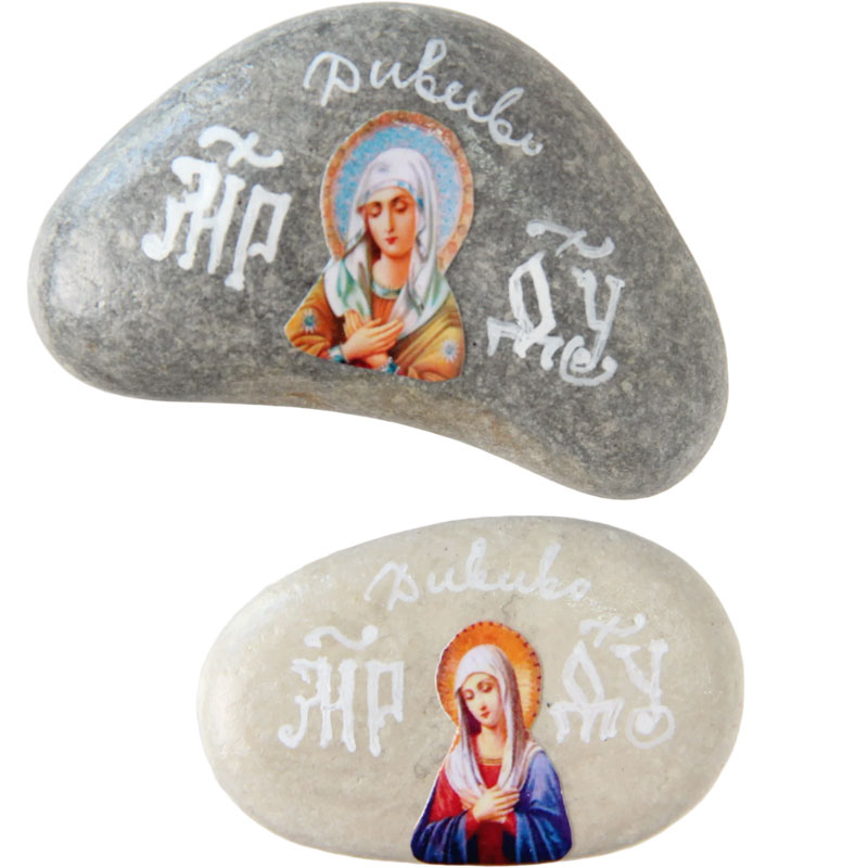 Камушек из Дивеево с иконой «Умиление» БМ, освящен. Вид и размер каждого камешка уникальны.