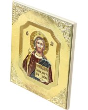 Лик иконы изготавливается полностью, включая рисунок иконы под окладом. Используется метод шелкографии, а также трафаретной объемной печати. Металлическая пластина состоит из листа аллюминия (он получает поверхностную обработку с помощью PVD технологии нанесения тонкого слоя серебра) покрыта лаком. Икона упакована в подарочную коробку, и завернут, что предотвращает от внешнего воздействия.