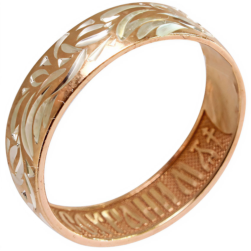 Кольцо из серебра 925 пробы, гравировка, золочение, на внутренней стороне кольца молитва «Господи, спаси и сохрани мя».