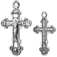 Крест православный серебряный 925 пробы, частичное чернение. Размер изделия — 1,7 см, толщина — 1 мм.