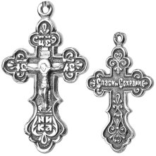 Крест православный серебряный 925 пробы, частичное чернение. Размер изделия — 2,2 см, толщина — 1 мм.