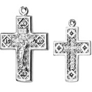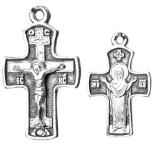 Крест православный серебряный 925 пробы, частичное чернение. Размер изделия — 1,7 см, толщина — 1 мм.
