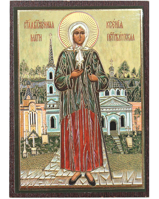 Ксения Петербургская икона на МДФ (6,3 х 9 см)