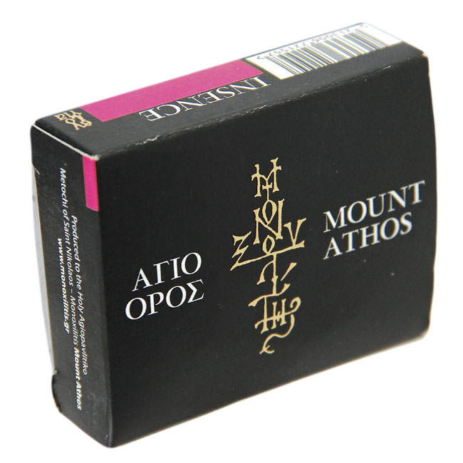 Ладан афонский в картонной коробке. Ладан высшего сорта, сделан вручную по классической технологии из натуральных растительных смол, ароматических добавок и эфирных масел. Не содержит синтезированных компонентов искусственного происхождения. Изготовлен по уникальному рецепту, сохраненному монахами в Монастыре Святого Павла на Святой горе Афон, этот ладан обладает стойким, сладким насыщенным ароматом, сохраняющимся в течение длительного времени после каждения, не дает запаха гари при каждении.
