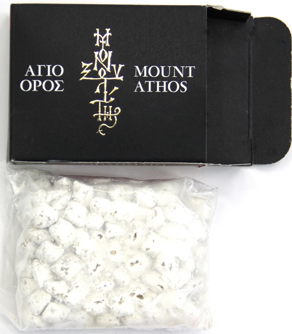Ладан афонский в картонной коробке. Ладан высшего сорта, сделан вручную по классической технологии из натуральных растительных смол, ароматических добавок и эфирных масел. Не содержит синтезированных компонентов искусственного происхождения. Изготовлен по уникальному рецепту, сохраненному монахами в Монастыре Святого Павла на Святой горе Афон, этот ладан обладает стойким, сладким насыщенным ароматом, сохраняющимся в течение длительного времени после каждения, не дает запаха гари при каждении.
