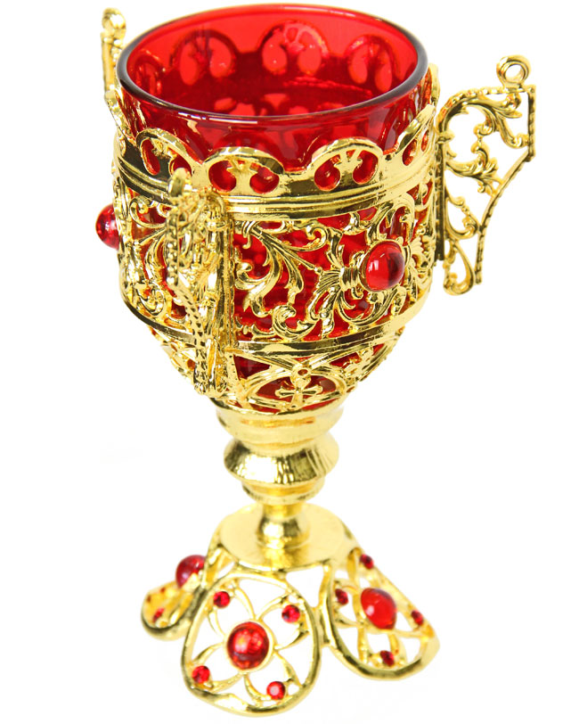 Лампада настольная в подарочной упаковке в металлическом подлампаднике со стразами.