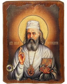 Икона, изготовленная из натурального дерева по греческой технологии, по благословению Афона. На обороте имеется печать Агио Орос (Άγιο Όρος).
