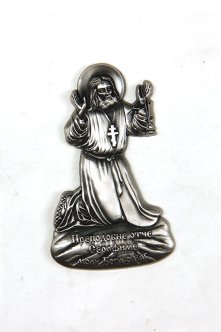 Святой изображен в молитвенной коленопреклоненной позе ко Господу.