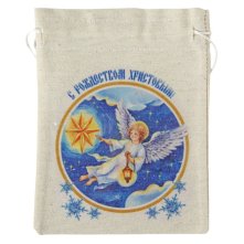 Мешочек для рождественских подарков «Ангел в небе с фонариком» (лен, 12 х 18 см)