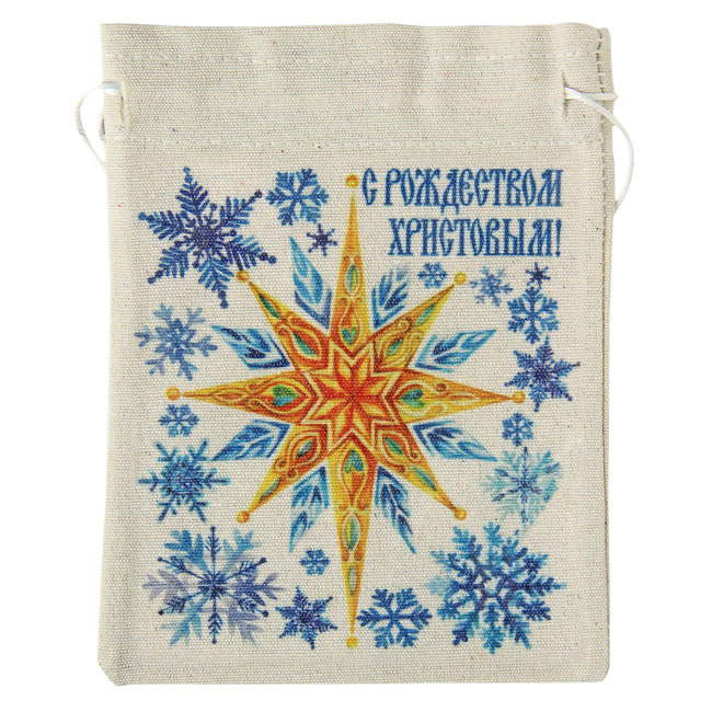 Мешочек для рождественских подарков «Звезда и снежинки» (лен, 12 х 18 см)