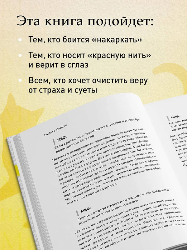 Духовная жизнь человека, даже воцерковленного, сопряжена со множеством вызовов и испытаний, мифы и суеверия преграждают путь к Богу. За долгие века своего существования Церковь боролась со множеством заблуждений, но некоторые оказывались настолько живучими, что искоренить их до конца не удается и по сей день. Впрочем, эта работа успешно продолжается, и ее частью стала данная книга, где представлены — и развенчаны — самые разные мифы и суеверия, имеющие отношение к Церкви, от вполне безобидных «народных примет» до неверно воспринятых богословских догматов.
