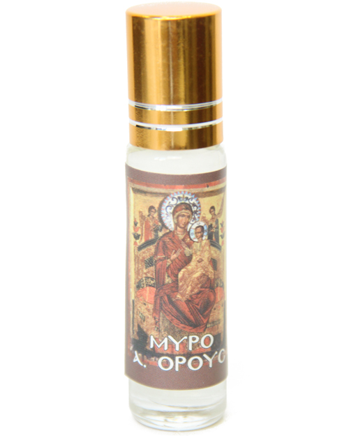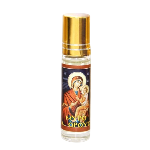 Миро греческое (вареное) с шариком для помазания, освящено от чудотворных афонских икон. Церковные благовония, масло (арома) наносят на кожу в качестве духов. Благодаря компактному размеру, может быть использовано в дороге.