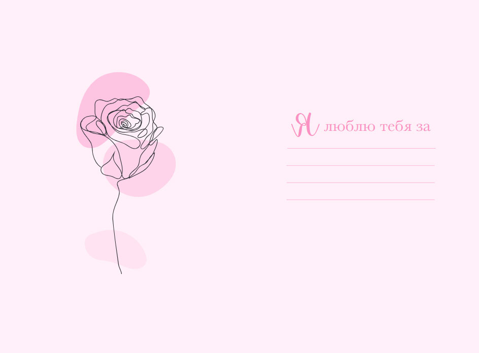 Открытку украшают нежные стильные иллюстрации, придающие ей праздничный и современный вид.