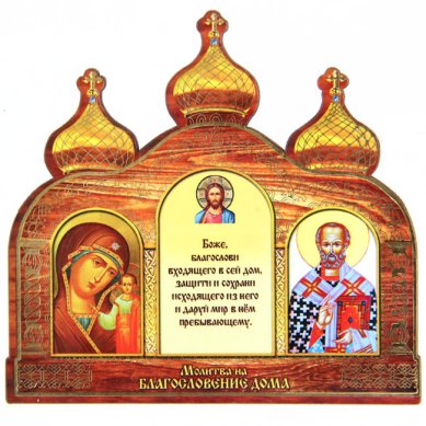 Молитва на дереве «Благословение дома» (Казанская, Николай Чудотворец, 11 х 10,5 см)