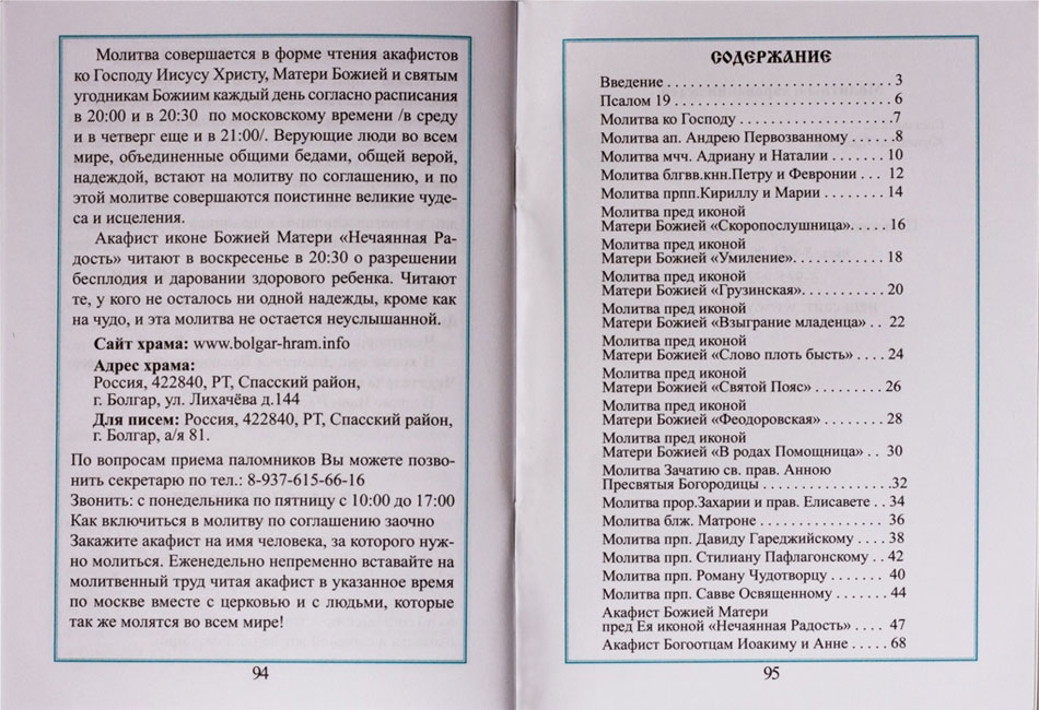В книге, помимо икон святых и молитв к ним, дана информация в каких храмах и где находятся эти иконы и когда совершаются перед ними молитвословия.