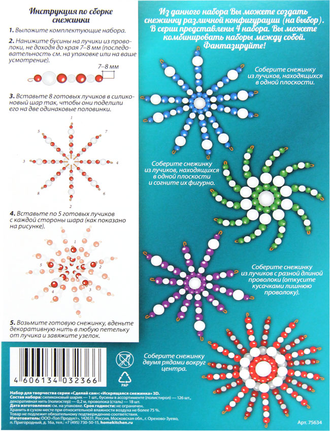 Купив этот набор, вы сможете самостоятельно изготовить праздничные снежинки для рождественской ёлки.