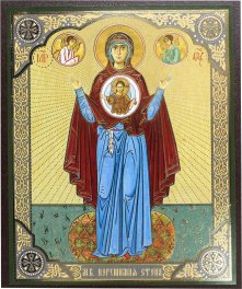 Икона на МДФ, выполненная в технике цветная полиграфия с золотым тиснением.