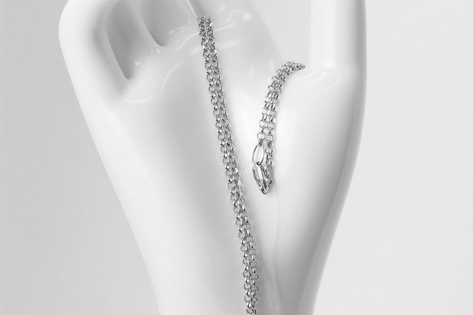 Цепь серебряная 925 пробы, покрытие — родирование, длина 55 см.