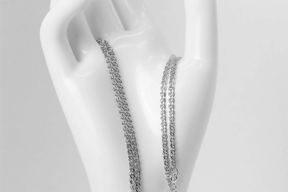 Цепь серебряная 925 пробы, покрытие — родирование, длина 55 см.