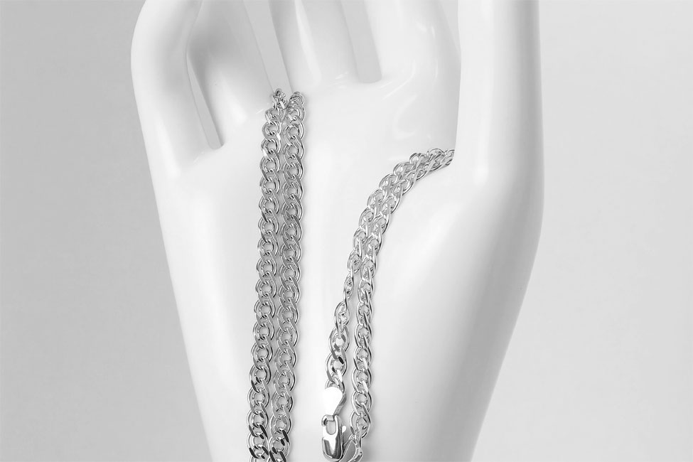 Цепь серебряная 925 пробы, покрытие — родирование, длина 55 см.