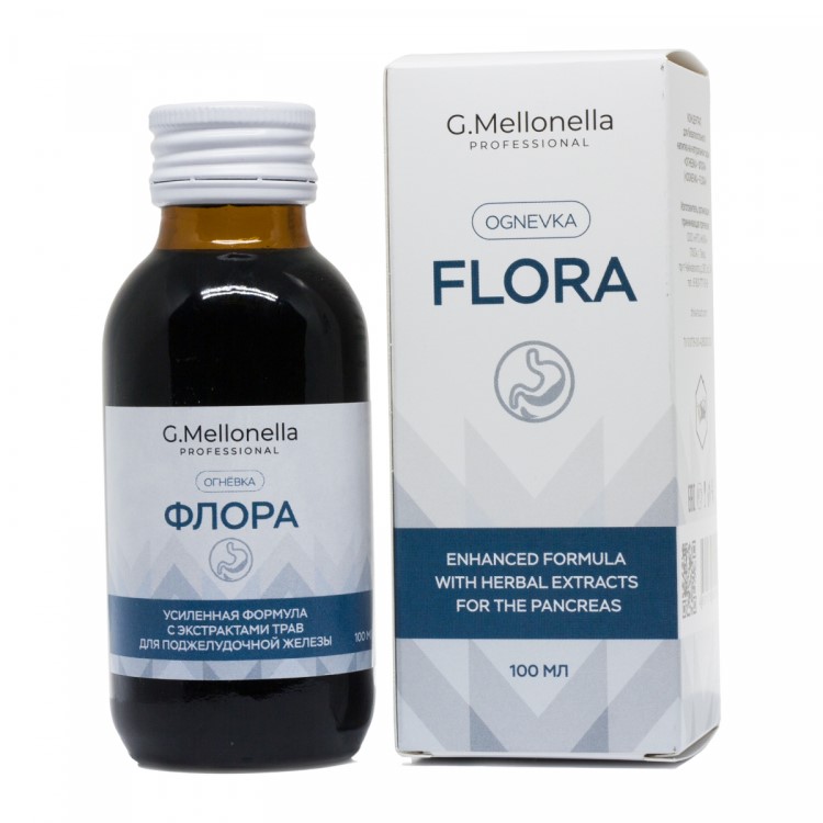 «Огневка-ФЛОРА» - сбалансированный комплекс натуральных продуктов пчеловодства и экстрактов трав. Рекомендован как сопутствующее средство для профилактики заболеваний поджелудочной железы. В основе концентрата - народные рецепты целебных свойств растений, усиленные полезными свойствами продуктов пчеловодства – огневки и прополиса. Благодаря своему составу, «Огневка-ФЛОРА» обладает такими свойствами как: Улучшение выработки ферментов для расщепления белков, жиров и углеводов, которые попадают в организм вместе с пищей. За это отвечают зверобой, пижма и ромашка. Улучшение выработки инсулина для нормализации уровня глюкозы в крови. Данному эффекту способствуют мята и люцерна. Выведение токсинов из организма. С этой задачей справляются розмарин и шалфей. Укрепление организма. Этому способствуют календула, мята, черный орех.
