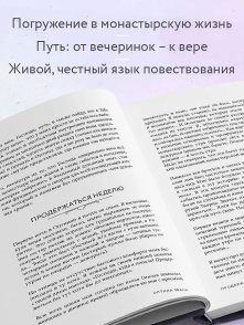 «Потрясающая живая история прихода к Богу: красивая девушка, имеющая все желаемые мирские блага, неожиданно для всех уезжает в монастырь, где происходит чудо приобщения к Христу, к святым, к настоящей жизни и любви. Встречи с отцом Илиодором, с матушкой Елизаветой и старцем Илием наполняют читающих светом и любовью, которая льётся со страниц этой прекрасной книги». — Евгения Ульева, православный психолог