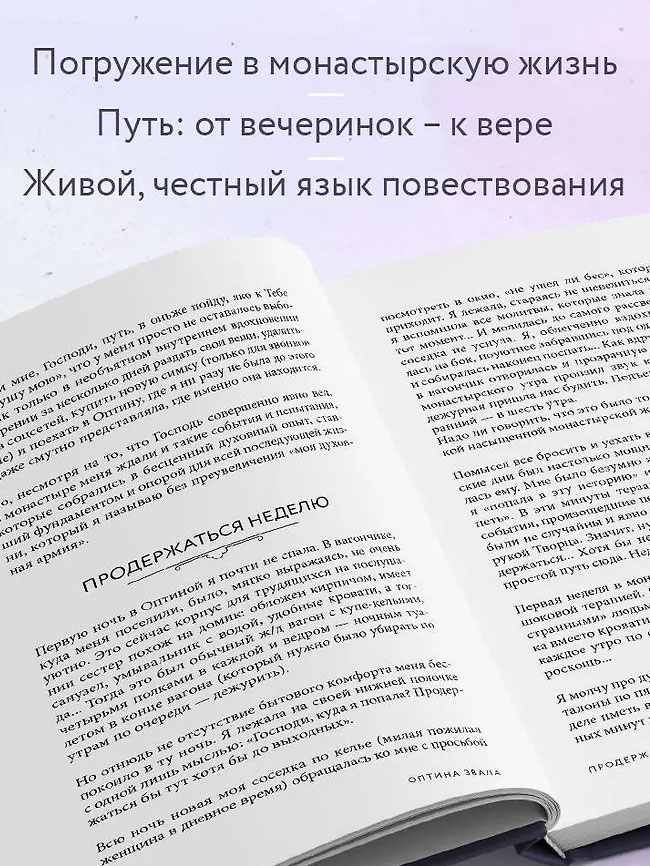 На 7 месяцев девушка уехала в легендарный монастырь Оптина Пустынь. Суровые условия послушания, душ раз в неделю, изнуряющая работа с рассвета до заката, общение с знаменитыми старцами и нечаянные радости, — весь уникальный опыт жизни в обители глазами простого человека. Захватывающая история 7 месяцев послушания, которая тронула сердца более 170 тыс. подписчиков в соцсетях