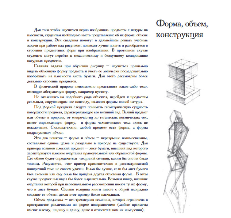 В предлагаемой книге рассматриваются теоретические и методические вопросы изобразительной грамоты. Книга содержит полный объем основных учебных заданий по рисунку, расположенных в строгой последовательности усложнения задач; рассматривает основы композиции, перспективы, пропорции, законы светотени и пластической анатомии, дает представление о форме, объеме и конструкции. Особое внимание автор уделяет методике конструктивно-структурного изображения предметов, а также конструктивно-анатомическому анализу сложной живой формы, основанному на закономерностях их строения. Основные принципы учебного рисунка с натуры, приведенные в книге, способствуют формированию и развитию объемно-пространственных представлений и совершенствованию графических навыков у заинтересованных читателей.