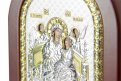 Икона Божией Матери «Всецарица» ручной работы. Лик иконы изготавливается полностью, включая рисунок иконы под окладом. Используется метод шелкографии, а также трафаретной объемной печати. Металлическая пластина состоит из листа алюминия (он получает поверхностную обработку с помощью PVD технологии нанесения тонкого слоя серебра и золота) и покрыта лаком. На обратной стороне иконы имеется сертификат в виде наклейки. Икона имеет ножку-подставку и отверстие для крепления к стене.