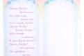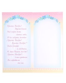 Открытка двойная со сгибом по вертикали, внутри напечатано стихотворение. Изготовлена из картона, имеет биговку (канавку по линии сгиба). Украшена рельефным тиснением с блестками.