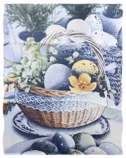 Открытка двойная со сгибом по вертикали, внутри напечатано пасхальное поздравление. Изготовлена из картона, имеет биговку (канавку по линии сгиба).