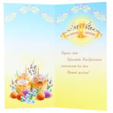 Открытка двойная со сгибом по вертикали, внутри стихотворение. Изготовлена из картона, имеет биговку (канавку по линии сгиба). Украшена рельефным тиснением с блестками.