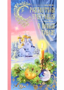 Открытка двойная со сгибом по вертикали и чистой внутренней стороной. Изготовлена из картона, имеет биговку (канавку по линии сгиба). Украшена золотым тиснением.
