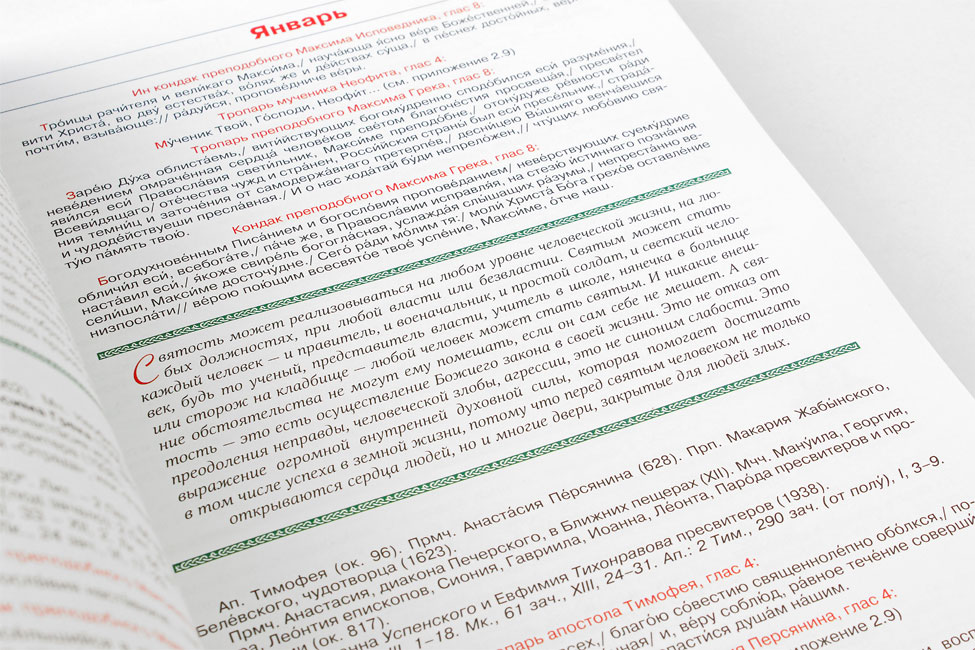 Патриарший календарь продолжает традицию полного официального календаря-справочника по предстоящему богослужебному году и устройству Русской Православной Церкви. Уникальное издание включает традиционный полный месяцеслов с развернутыми богослужебными заметками, тропарями и кондаками, а также фрагменты проповедей Святейшего Патриарха Московского и всея Руси Кирилла на каждый день церковного года. В календаре приводятся тропари и кондаки тех праздников или святых, совершение служб которым предусматривается Богослужебными указаниями, выпускаемыми Издательством Московской Патриархии. В богослужебных заметках раскрываются литургические особенности предстоящего года.