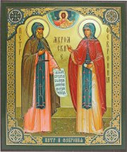 Петр и Феврония Муромские, икона на МДФ (15,2 х 18,5 см)