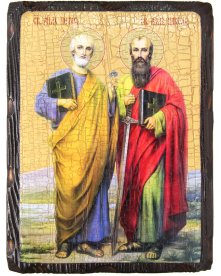 Икона выполнена в технике состаривания. На обратной стороне имеется отверстие для крепления.
