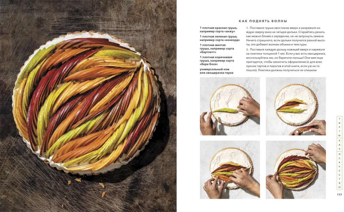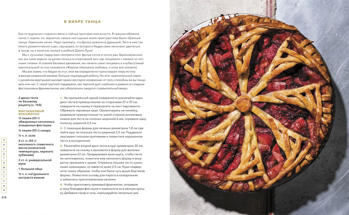 В «Пирогометрии» Лорен не только раскрывает свои секреты, но и делится историями о каждом варианте оформления, рассказывает, что именно ее вдохновило. Она не скрывает, что самым красивым пирогам и тартам предшествовали впечатляющие «пирогострофы» и «тартаварии», пишет об этом с теплом и юмором.