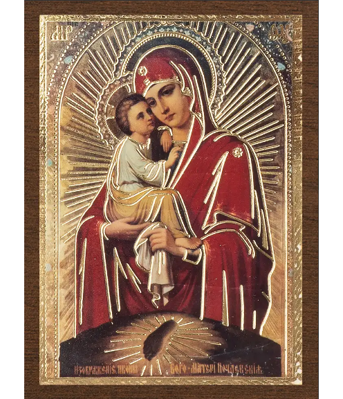Икона на МДФ, выполненная в технике цветная полиграфия с золотым тиснением.