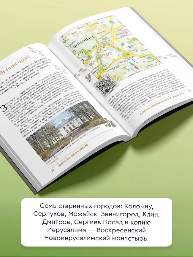 Для книги о Подмосковье автор отобрал неоднократно посещаемые, любимые и самые интересные места. Семь старинных городов: Коломну, Серпухов, Можайск, Звенигород, Клин, Дмитров, Сергиев Посад и копию Иерусалима — Воскресенский Новоиерусалимский монастырь.