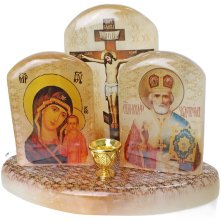 Подсвечник из селенита с распятием и иконами, 13х13х6 см