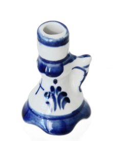Керамический подсвечник. Роспись на подсвечнике выполнена в стиле «гжель».